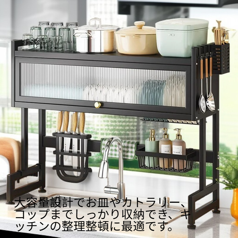 ● 大容量設計でお皿やカトラリー、コップまでしっかり収納でき、キッチンの整理整頓に最適です。