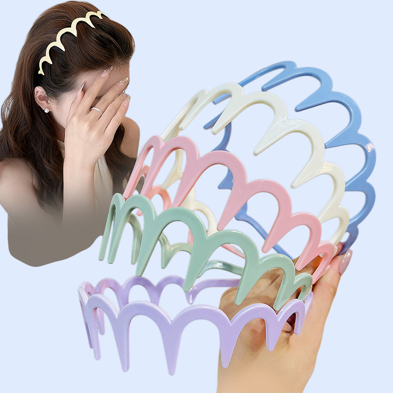 波状の歯付きヘッドバンドは、ズレにくくしっかり固定。軽量で長時間快適、髪型を美しくキープ。男女兼用デザイン。